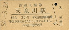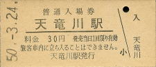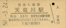 | 天竜峡 “てんりゅうきょう” 30円 〔飯田線〕 昭和50年7月20日 |