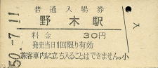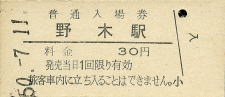 野木 “のぎ” 30円 〔東北本線〕 昭和50年7月11日 |