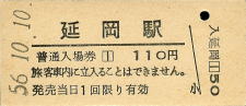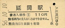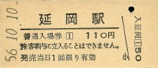 延岡 “のべおか” 110円 〔日豊本線〕 昭和56年10月10日 |
