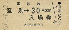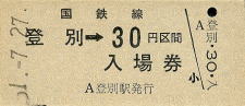 | 登別 “のぼりべつ” 30円 〔室蘭本線〕 昭和51年7月27日 |