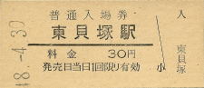 東貝塚 “ひがしかいづか” 30円 〔阪和線〕 昭和48年4月30日 |