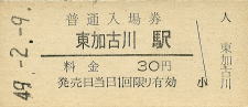 | 東加古川 “ひがしかこがわ” 30円 〔山陽本線〕 昭和49年2月9日 |