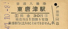 東唐津 “ひがしからつ” 30円 〔筑肥線〕 昭和49年2月9日 |
