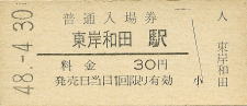 | 東岸和田 “ひがしきしわだ” 30円 〔阪和線〕 昭和48年4月30日 |