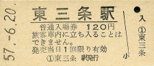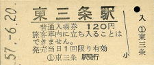 東三条 “ひがしさんじょう” 120円 〔信越本線〕 昭和57年6月20日 |