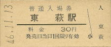 東萩 “ひがしはぎ” 30円 〔山陰本線〕 昭和46年11月13日 |