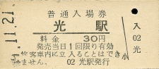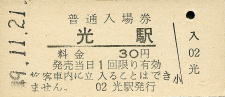 | 光 “ひかり” 30円 〔山陽本線〕 昭和49年11月21日 |