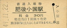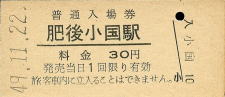 | 肥後小国 “ひごおぐに” 30円 〔宮原線〕 昭和49年11月22日 |