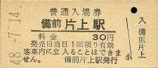 備前片上 “びぜんかたかみ” 30円 〔赤穂線〕 昭和48年7月14日 |