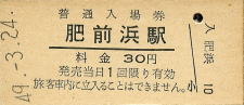 | 肥前浜 “ひぜんはま” 30円 〔長崎本線〕 昭和49年3月24日 |