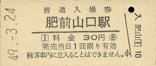 肥前山口 “ひぜんやまぐち” 30円 〔長崎本線〕 昭和49年3月24日 |