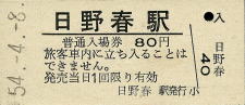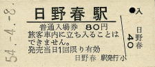 日野春 “ひのはる” 80円 〔中央本線〕 昭和54年4月8日 |