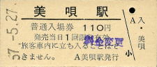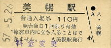 美唄 “びばい” 110円 〔函館本線〕 昭和57年5月27日 |