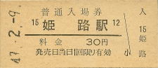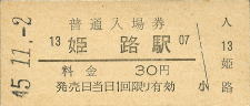 | 姫路 “ひめじ” 30円 〔山陽本線〕 昭和45年11月2日 |