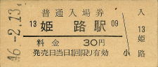 姫路 “ひめじ” 30円 〔山陽本線〕 昭和46年2月13日 |