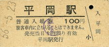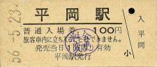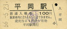 | 平岡 “ひらおか” 100円 〔飯田線〕 昭和56年5月23日 |