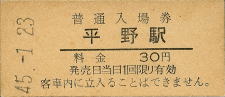 平野 “ひらの” 30円 〔関西本線〕 昭和45年1月23日 |