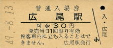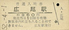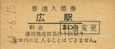 広 “ひろ” 20円 〔呉線〕 昭和44年6月15日 |