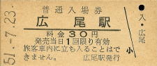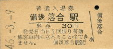 | 備後落合 “びんごおちあい” 30円 〔芸備線〕 昭和46年3月9日 |
