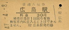 | 広島 “ひろしま” 30円 〔山陽本線〕 昭和45年7月26日 |