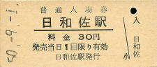 日和佐 “ひわさ” 30円 〔牟岐線〕 昭和50年9月1日 |