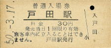 | 戸田 “へた” 30円 〔山陽本線〕 昭和50年3月17日 |
