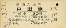 | 戸田 “へた” 30円 〔山陽本線〕 昭和51年3月21日 |