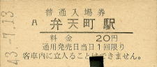 | 弁天町 “べんてんちょう” 20円 〔大阪環状線〕 昭和43年7月13日 |