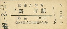 | 舞子 “まいこ” 30円 〔山陽本線〕 昭和49年2月2日 |