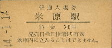 米原 “まいばら” 20円 〔東海道本線〕 昭和44年1月14日 |