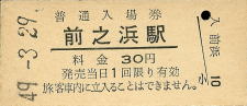 前之浜 “まえのはま” 30円 〔指宿枕崎線〕 昭和49年3月29日 |