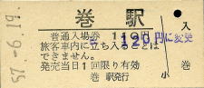 巻 “まき” 110円 〔越後線〕 昭和57年6月19日 |