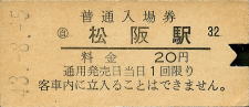 松阪 “まつさか” 20円 〔紀勢本線〕 昭和43年8月5日 |
