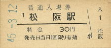 | 松阪 “まつさか” 30円 〔紀勢本線〕 昭和45年3月12日 |