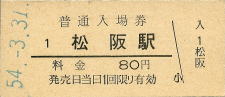 松阪 “まつさか” 80円 〔紀勢本線〕 昭和54年3月31日 |