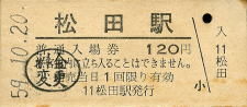 | 松田 “まつだ” 120円 〔御殿場線〕 昭和59年10月20日 |