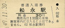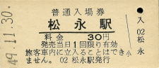 | 松永 “まつなが” 30円 〔山陽本線〕 昭和49年11月30日 |