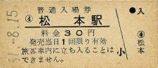 松本 “まつもと” 30円 〔篠ノ井線〕 昭和51年8月15日 |