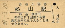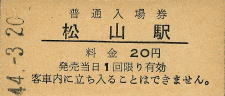 松山 “まつやま” 20円 〔予讃本線〕 昭和44年3月20日 |