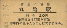 | 丸亀 “まるがめ” 20円 〔予讃本線〕 昭和44年3月16日 |