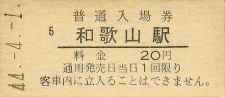 和歌山 “わかやま” 20円 〔紀勢本線〕 昭和44年4月1日 |