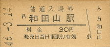 和田山 “わだやま” 30円 〔山陰本線〕 昭和46年3月14日 |