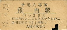稚内 “わっかない” 20円 〔宗谷本線〕 昭和43年4月20日 |