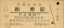 | 和寒 “わっさむ” 30円 〔宗谷本線〕 昭和48年8月20日 |