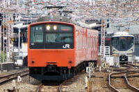 205系電車は,1985年/昭和60年,山手線に登場。 現在も,横浜線,相模線,南武線,鶴見線, 埼京線などに運用されています。 埼京線には,1989/平成元年から, ダークグリーン帯の205系が運用を開始しました。 今年度中に,E233系7000番台に置き換えられます。 |