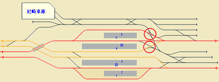 阪神電鉄・尼崎駅の三宮方向に,スリップポイントを見つけました。