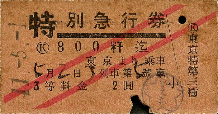 | 1935年/昭和10年8月18日 2列車・富士(ふじ)・特別急行券 | ||