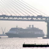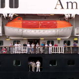 “アムステルダム”は,乗客定員1653人のオランダ客船です。 濃紺を基調とした船体に人気があります。 横浜へは,2003年,2005年に続く,3回目の来航でした。 65日間グランド アジア アンド オーストラリア ボヤージュの一環として, 青森から早朝入港,深夜,神戸に向けて出港しました。 |