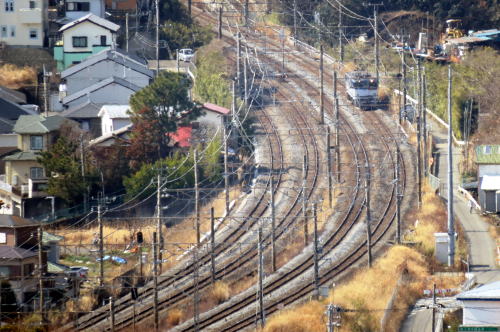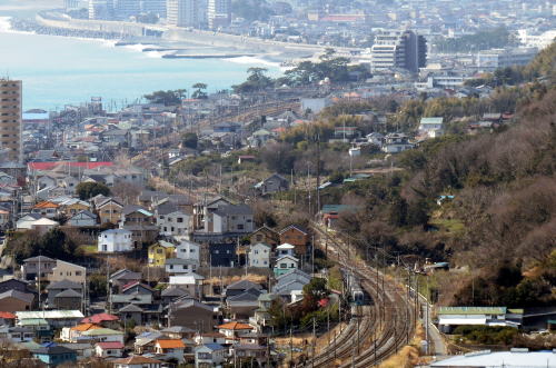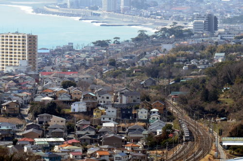| 湘南・二宮吾妻山・西空散歩 ◆吾妻山公園の山頂・展望台から 西方 国府津方向に東海道本線のカーブを走る列車を俯瞰しました。 展望台付近は,菜の花が満開になっていました。 多くの人は菜の花にカメラを向けていましたが, 私一人がいつ来るか判らない列車を狙って, 遠くの線路にカメラを向けていました。 東海道本線の土・休日の昼間特急列車として,185系踊り子, E251系スーパービュー踊り子,E259系マリンエクスプレス踊り子など 多彩な列車を撮影することができます。 |