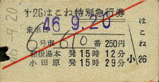 第26はこね・箱根湯本→・250円 昭和46年9月20日・箱根湯本営業所発行 |